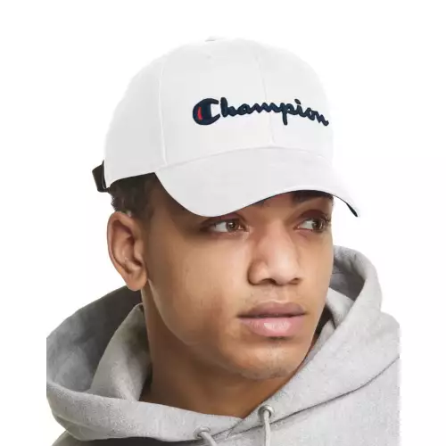 Brushed cotton twill cap provides a classic unisex fit with a leather adjustable back strap. Embroidered Champion script logo across the cap elevates your style.